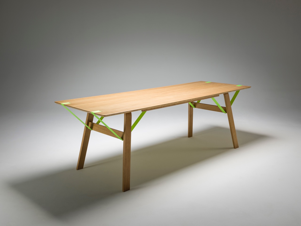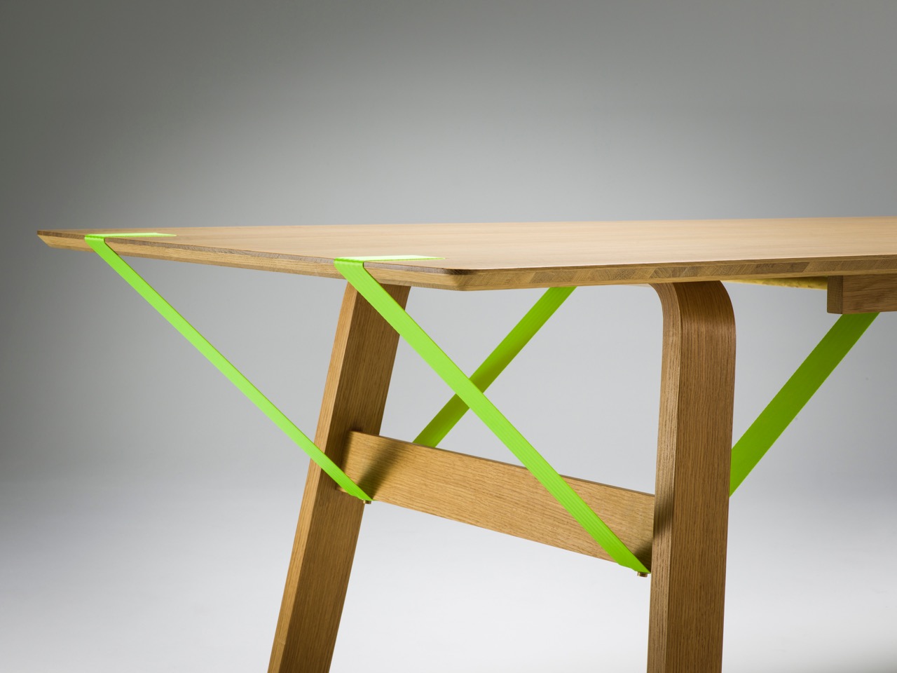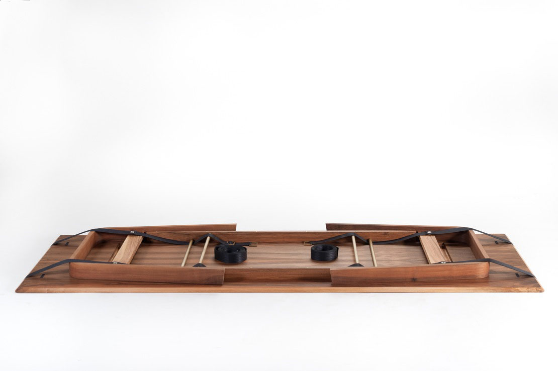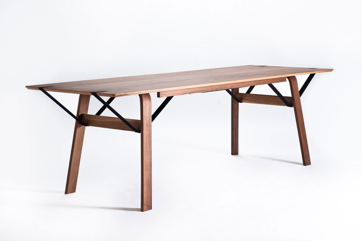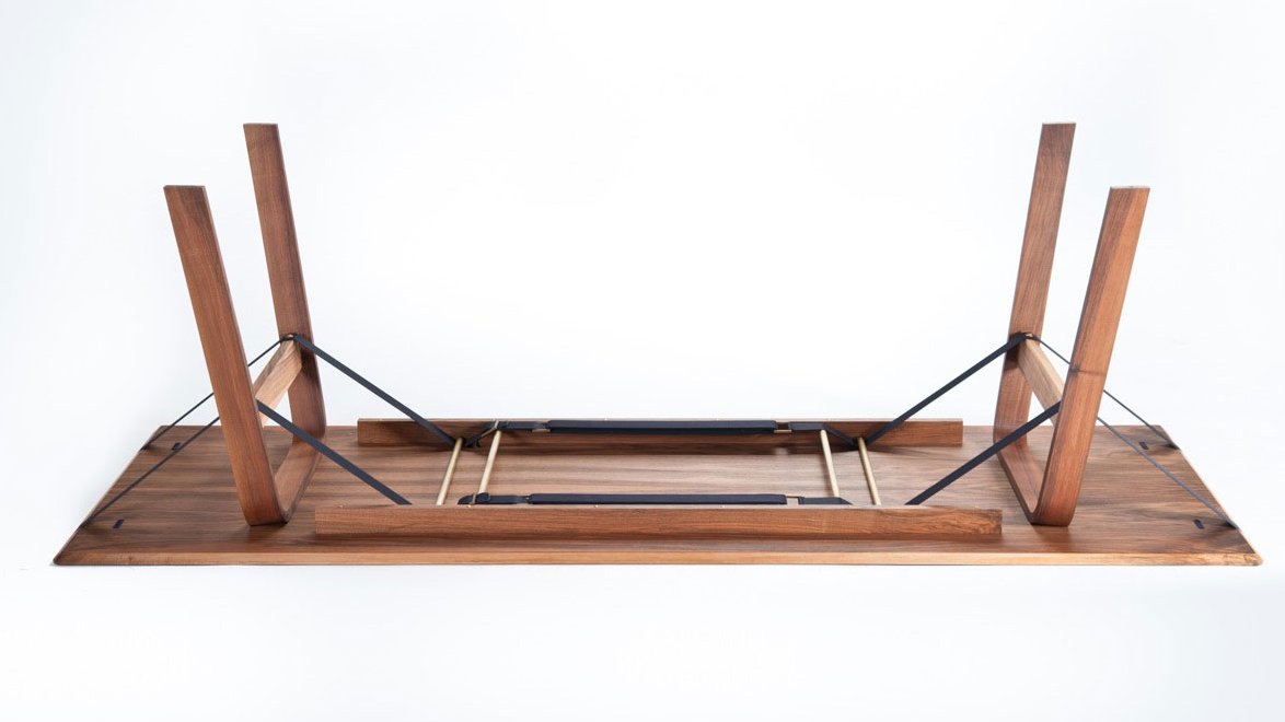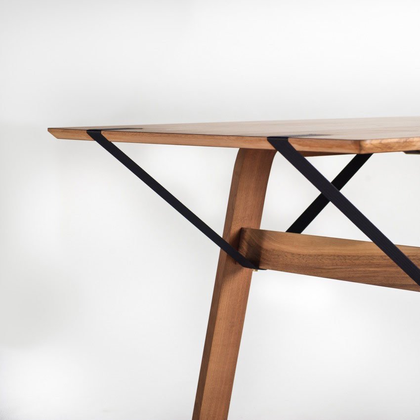 material: oak / walnut, industrial strap, brass