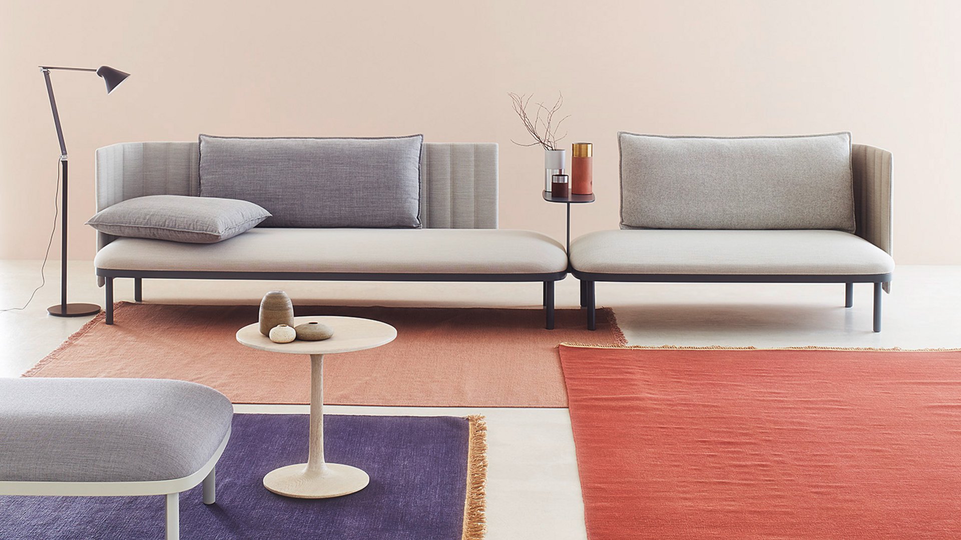 ophelis docks ist ein modulares Polstermöbelsystem, das als Bausteinsystem fungiert. Es kann als Sofa, kleiner Rückzugsort für konzentriertes Arbeiten oder als große Treffpunkt-Insel im Büro konfiguriert werden.