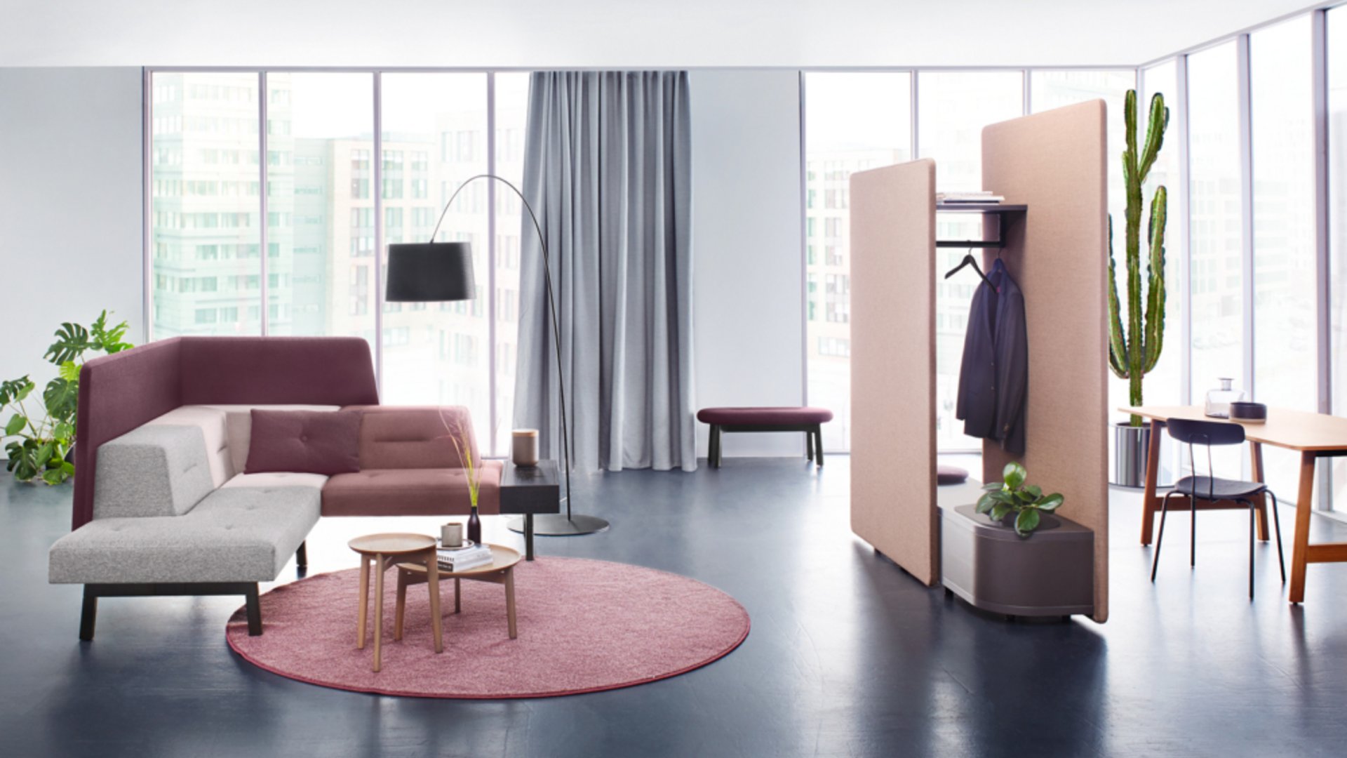 ophelis setzt auf Materialien und Formen, die dem klassischen Büro den sterilen Charakter nehmen. Mit hochwertigen Stoffen, akustisch wirksamen Paravents und durchdachten Details wie den Pflanzschalen "metapflanzschale" wird eine Atmosphäre geschaffen, in der sich Mitarbeiter wohlfühlen.
