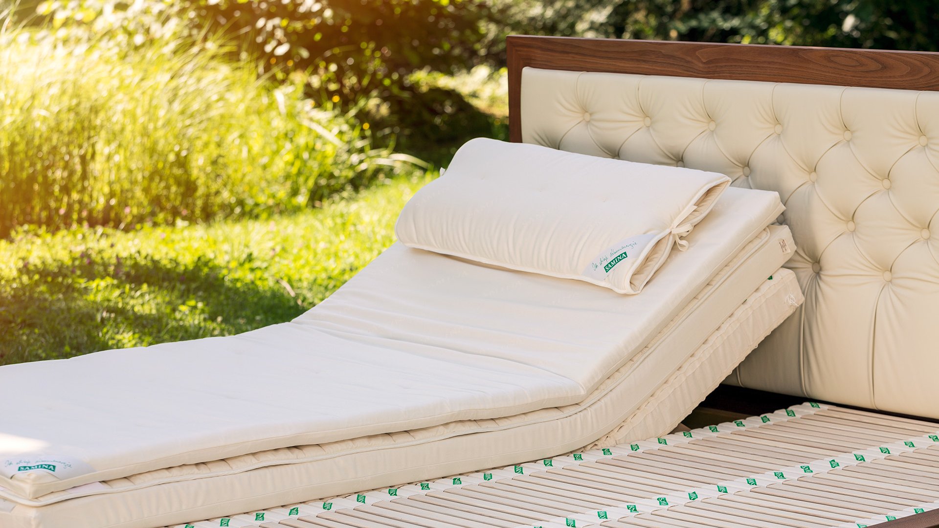 - Die Schafschurwoll-Auflage: Reguliert Feuchtigkeit und Temperatur auf natürliche Weise.