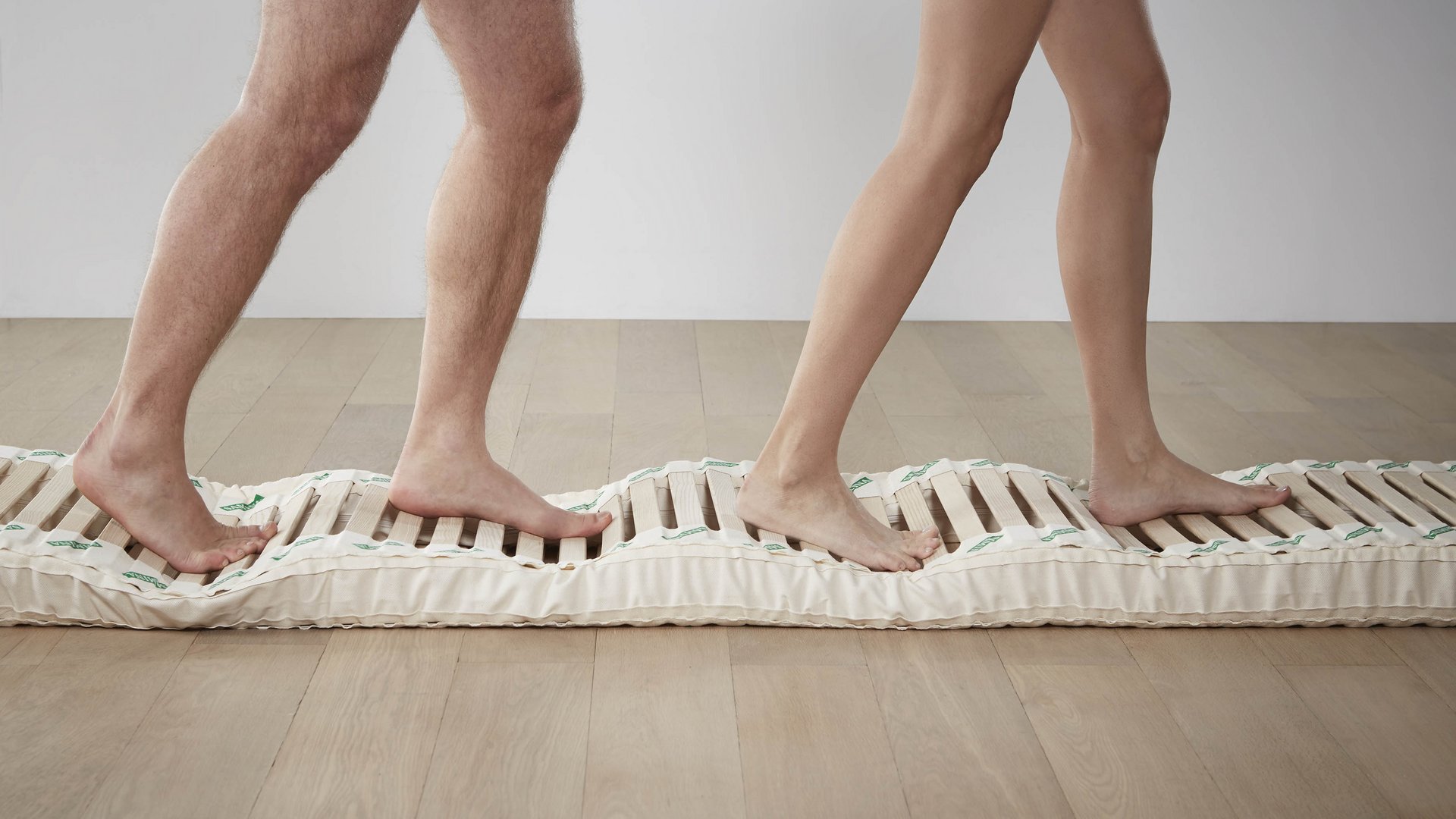 Herkömmliche Matratzen verlieren oft schnell an Stützkraft. Das SAMINA System ist modular aufgebaut. Der Lamellenrost übernimmt die aktive Stützarbeit, während die Matratze nur für den Komfort zuständig ist – das hält deutlich länger und ist gesünder.